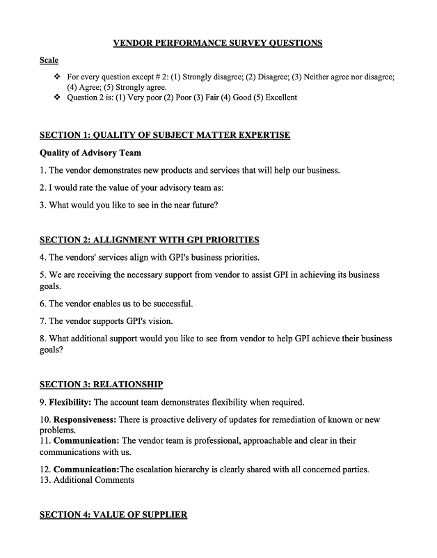 - Цель: Обеспечить, чтобы услуги поставщика соответствовали стратегическим целям GPI.