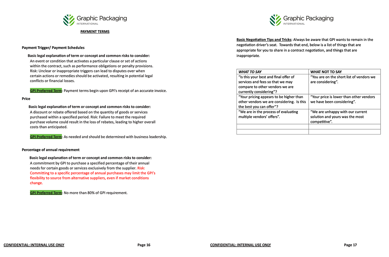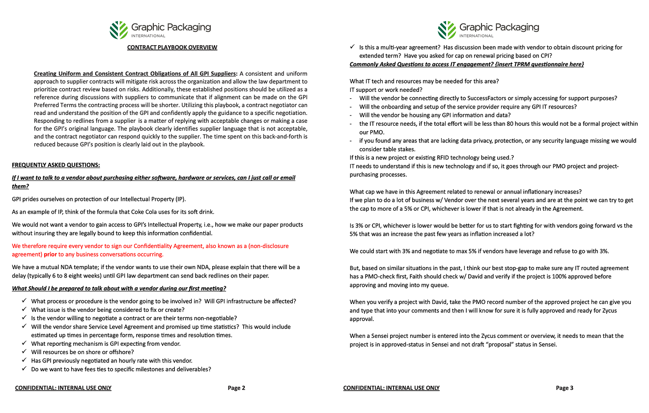 За основу була створена структура «playbook», яка дозволяє контрактним переговорникам швидко орієнтуватися у позиції компанії та застосовувати стандартизовані умови під час конкретних переговорів.