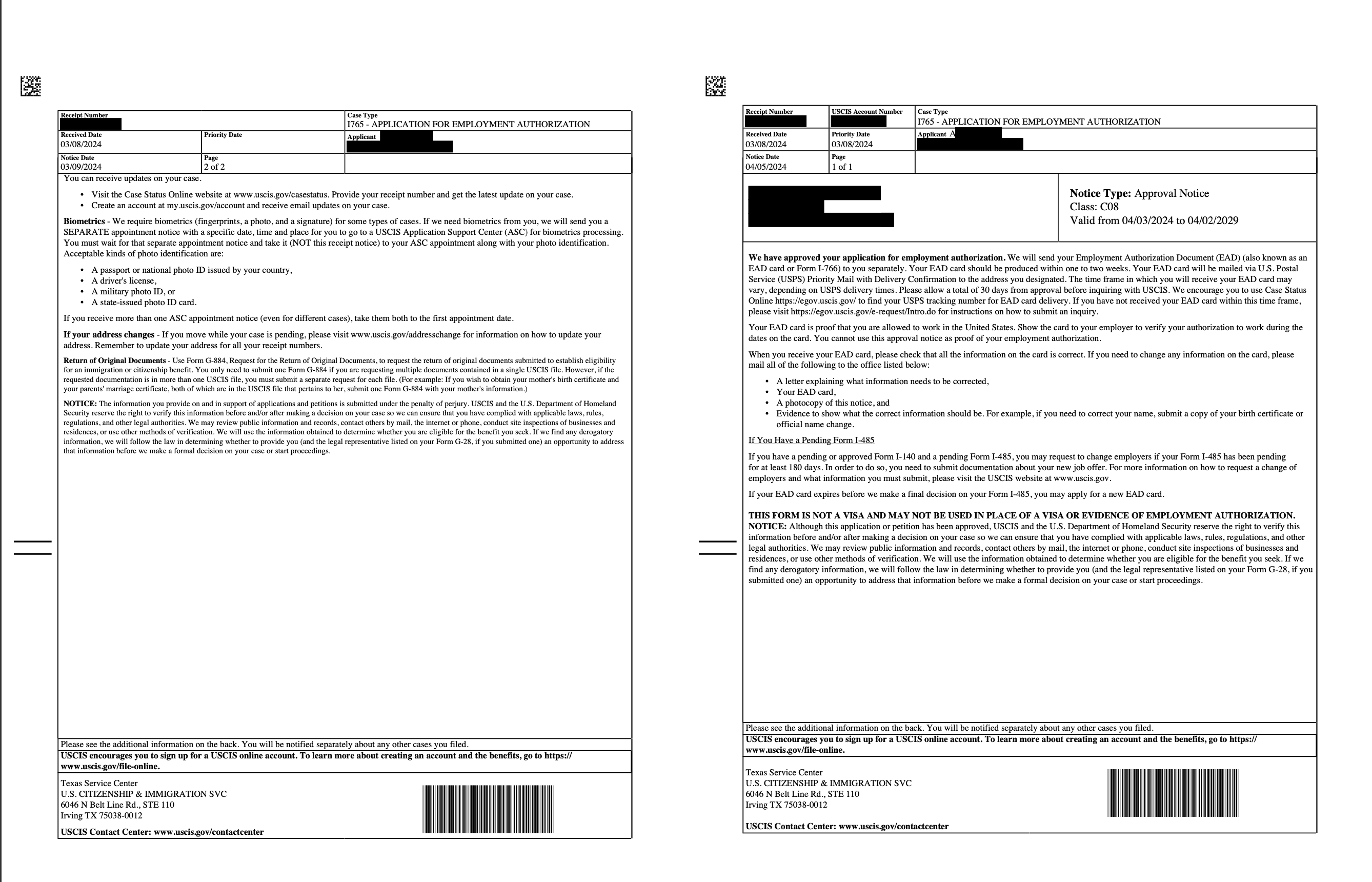 - Отримання Work Authorization на 5 років: Після того як ваша заявка буде оброблена, ви отримаєте дозвіл на роботу на 5 років.